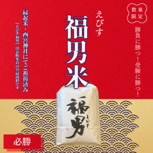 西宮神社にてご祈祷済みの福男米を店内・オンラインストアにて