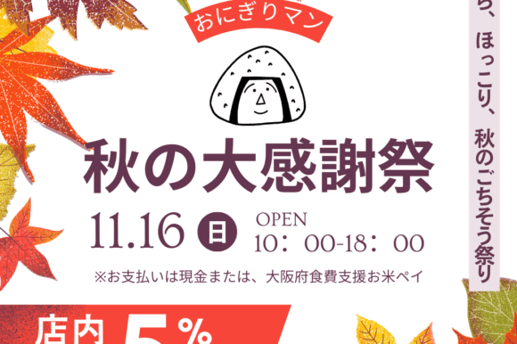 【店内商品5%OFF】おにぎりマン秋の大感謝祭2025 ~大阪 寝屋川 お米屋さん~