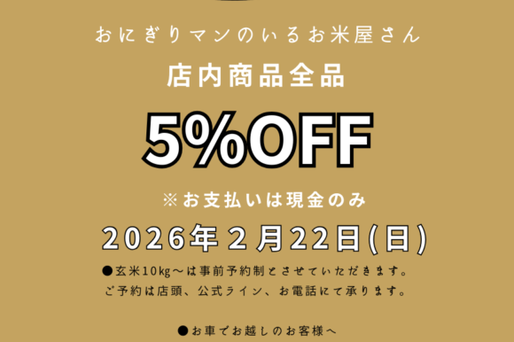 【2/22(日)限定】店内商品5%OFF! ~大阪 寝屋川 お米屋さん~