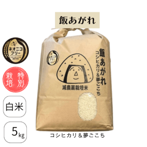 オリジナルブレンド米 飯あがれは、五つ星お米マイスター・おにぎりマンが、食感・香り・甘みのバランスを追求し、黄金比でブレンドしたこだわりのお米です。
